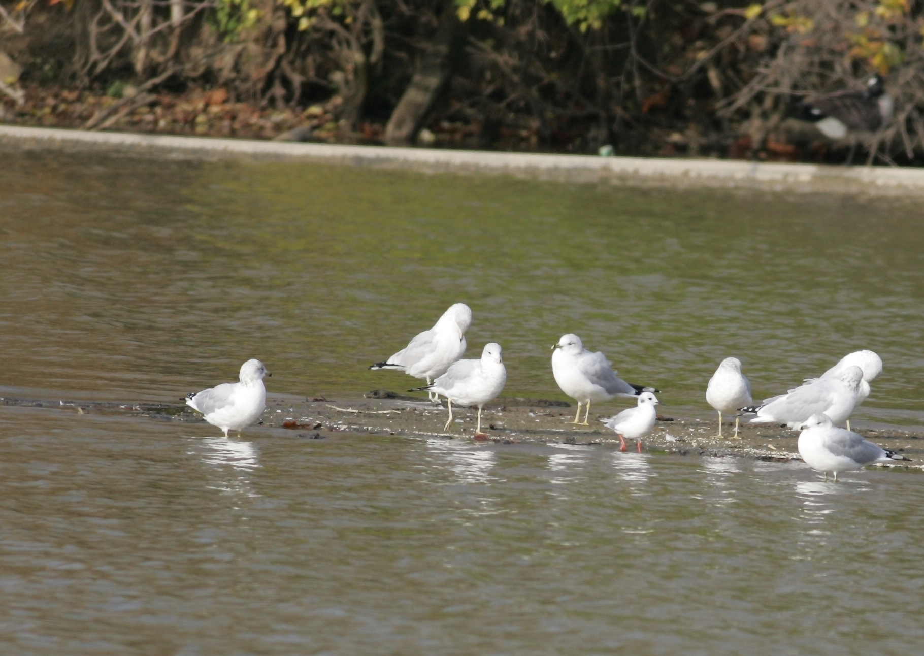 Bonaparte's Gull, Larus philadelphia, Order CHARADRIIFORMES - Family LARIDAE - Subfamily Larinae. These Gulls were the first of the year for me, Acton Lake, Heuston Woods State Park, in SW Ohio. Note the non-bredding colors and red legs. These are among the smallest gulls. Breeds in higher latitudes in Canada and winters along the coastal zones in the United States, Mexico, and Caribbean.
