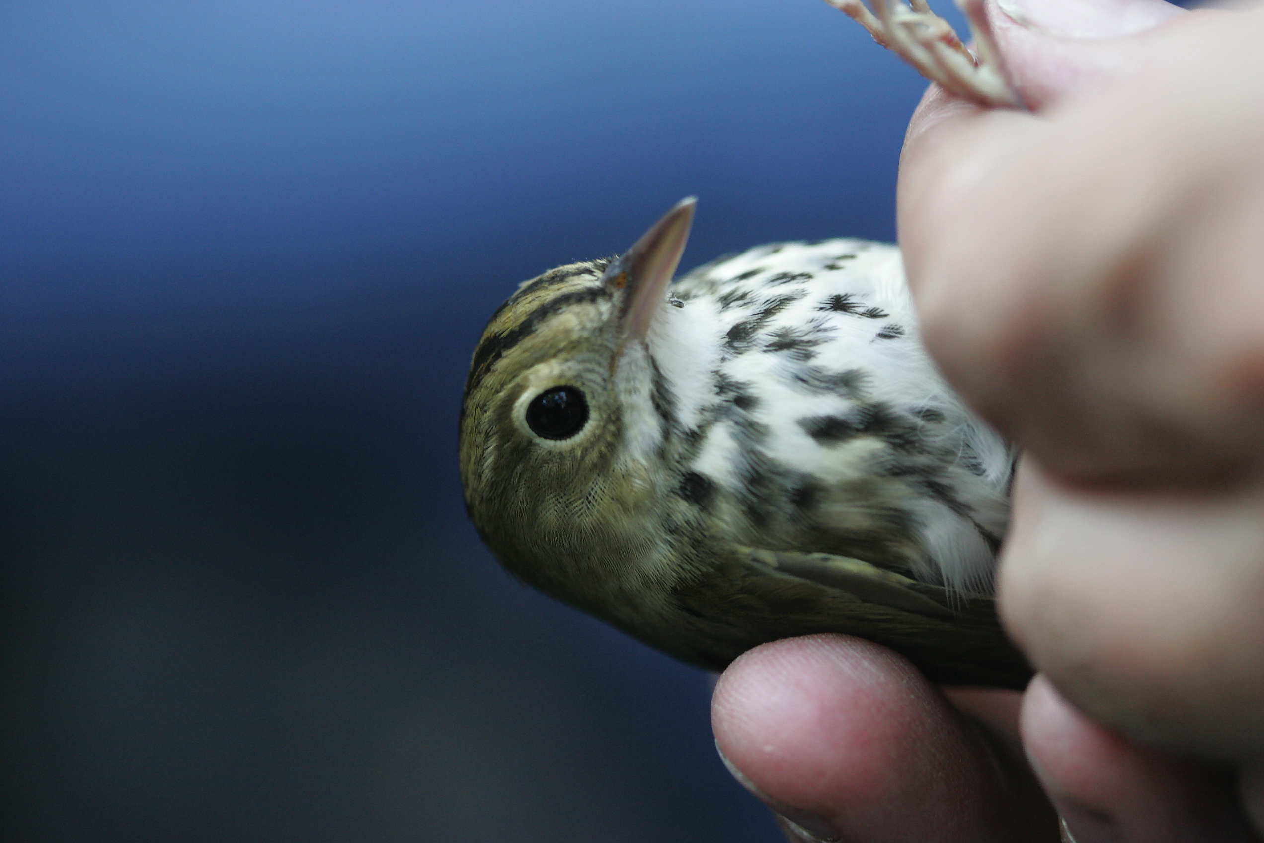 Ovenbird- Seiurus aurocapilla, Order Passeriformes-Family Parulidae. While mist netting in Miami University Birding Observatory with Drs. Jill and Dave Russel, and a covey of students, we netted several Ovenbirds! Wow! A life first for me.