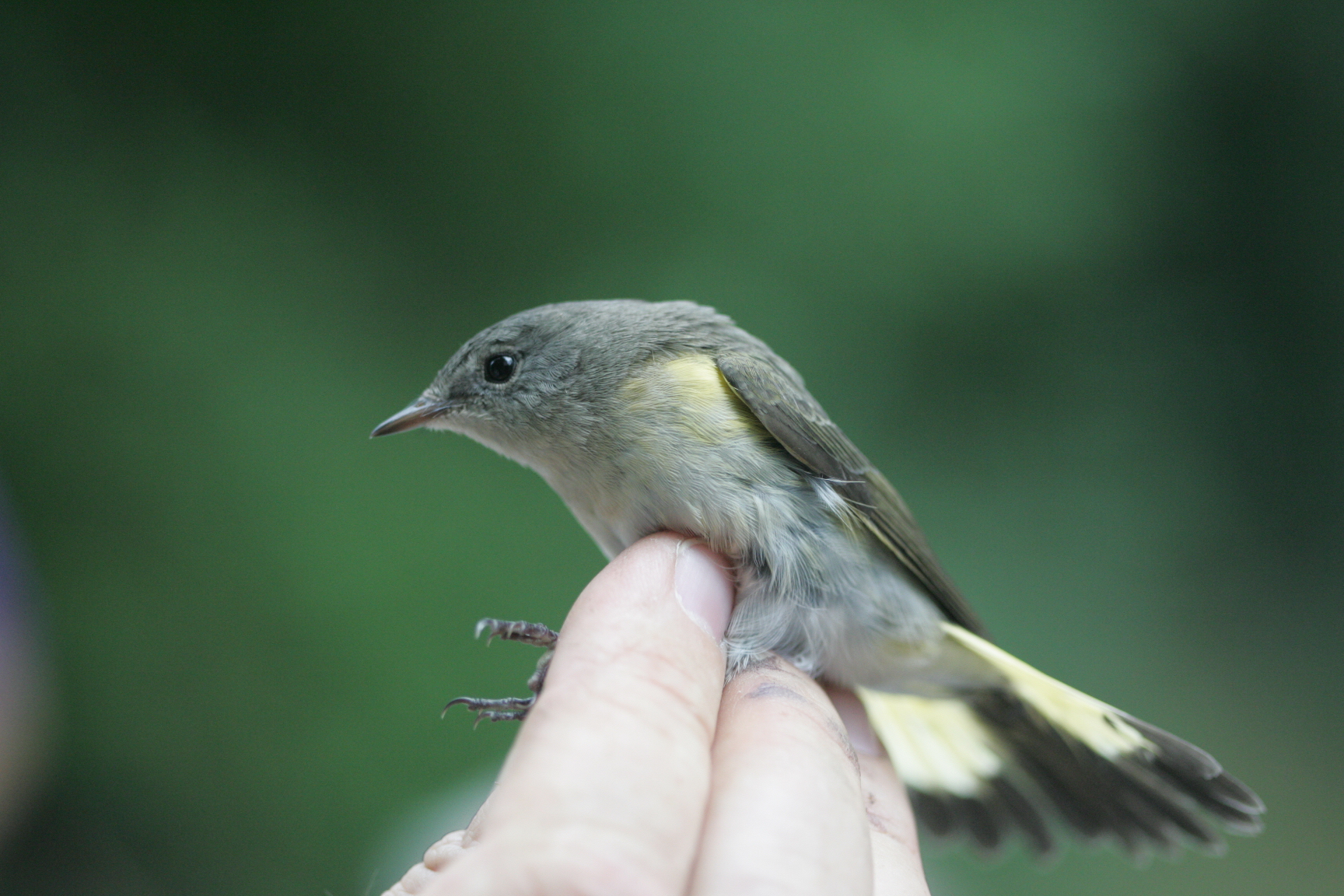 American Redstart- Setophaga ruticilla, Order Passeriformes-Family Parulidae. While mist netting in Miami University Birding Observatory with Drs. Jill and Dave Russel, and a covey of students, we netted an American Redstart!