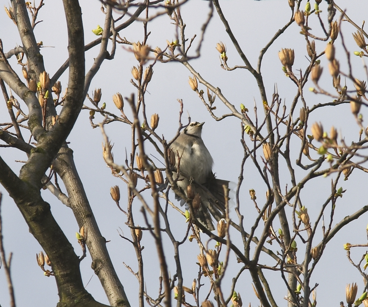 Blue Jay-Cyanocitta cristata, rder PASSERIFORMES - Family CORVIDAE. All year resident. Showy, noisy. Sexes alike. Absolutely beautiful. Surprisingly, they have a variety of songs beyond the typical squawk. Known for "nest raiding," mobbing, and other aggressive behavior. This individual was high in a Tulip Poplar Tree on Miami University's campus. (Photo: March 29, 2004, Canon 10D, EF 300mm f/4L IS USM, 1.4x teleconverter EF ll lens)