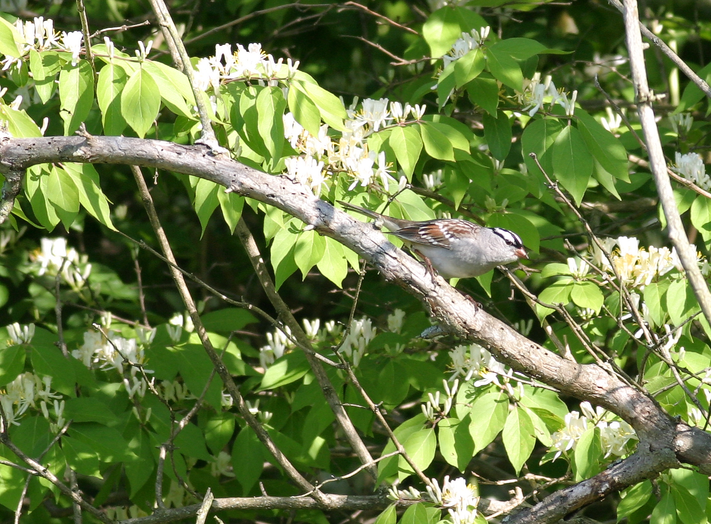 White Crowned Sparrow Breeding Colors. Birds were quite active in the early morning at the Gilmore Pond Conservancy in Hamilton Ohio.