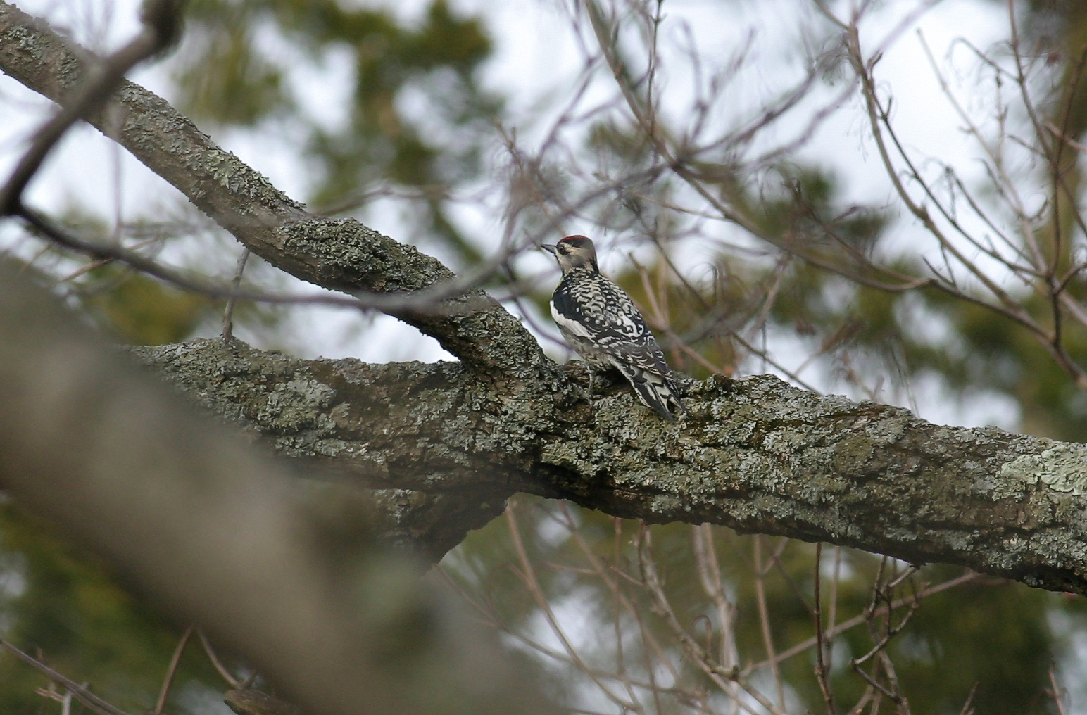 | Male Yellow-bellied Sapsucker- Sphyrapicus varius, Order PICIFORMES - Family PICIDAE. This bird was spotted in the woods behind my friend Mark McPhail's house in Oxford, Ohio. "Although most non-birders believe that the Yellow-bellied Sapsucker is a fictitious bird created just for the humorous name, in fact it is a widespread species of small woodpecker. Its habit of making shallow holes in trees to get sap is exploited by other bird species, and the sapsucker can be considered a "keystone" species, one whose existence is vital for the maintenance of a community. The Yellow-bellied Sapsucker is the only woodpecker in eastern North America that is completely migratory." (Photo: April 7, 2004, Canon 10D, EF 400mm f/5.6L USM)