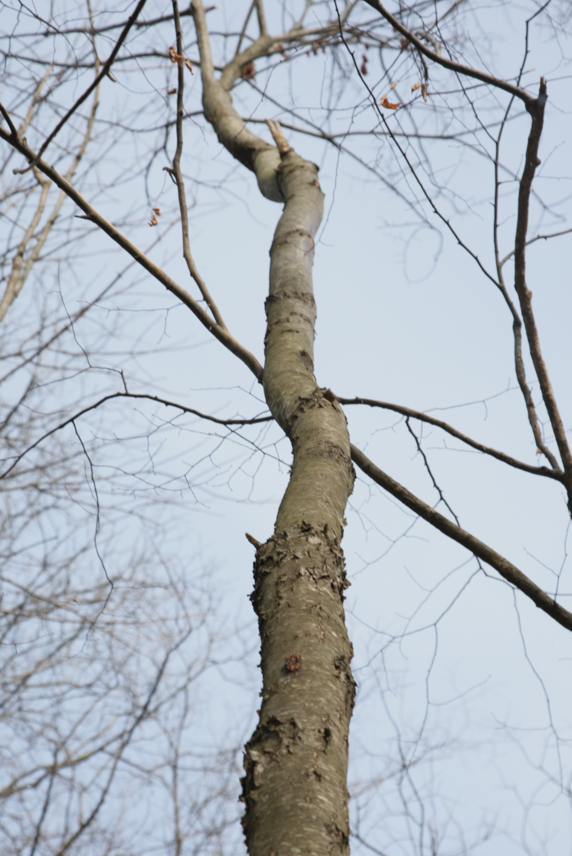 Located in the east woods west of McCummins Creek. Habitat not ideal for maximum growth. A pioneer invader. Fruits are a great food source. Leaves alernate and simple. With age, the smooth bark becomes scaly.