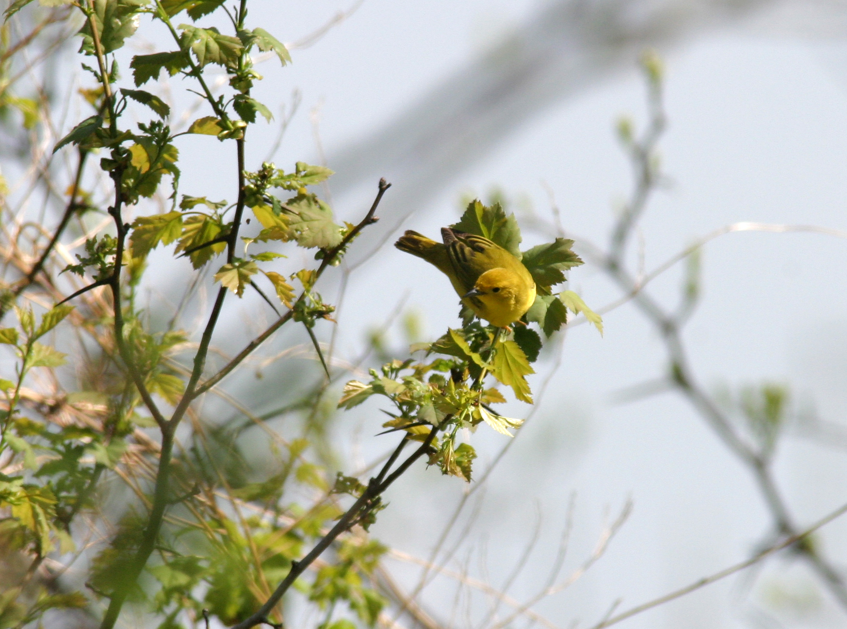 | Female Yellow Warbler, Dendroica petechia, Order PASSERIFORMES - Family PARULIDAE. My first confirmed warbler sightings this spring. This warbler was found on a very wonderful late-April day in Shaker Trace Wetlands in the Miami Whitewater Forest area in SW Ohio. Wow!