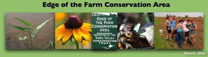 The Edge of the Farm Conservation area (Oxford, Ohio) was placed into a conservation easement with the Three Valley Conservation Trust in December, 2007. The total size is ~32 acres with ~11 acres of prairie and 5 wetlands, and 21 acres of forest. Funding for the prairie restoration were provided by US Fish and Wildlife (thanks Sergio!), Miami Valley Pheasants Forever provided essential technical advice and assistance, Cardno ecological consulting firm (thanks Joel & Danielle) provided funding and assistance, and yours truly! Special thanks to FRIENDS of the EDGE who have volunteered their time and hard labor to remove many acres of honeysuckle! Your efforts in restoring the land are much appreciated!