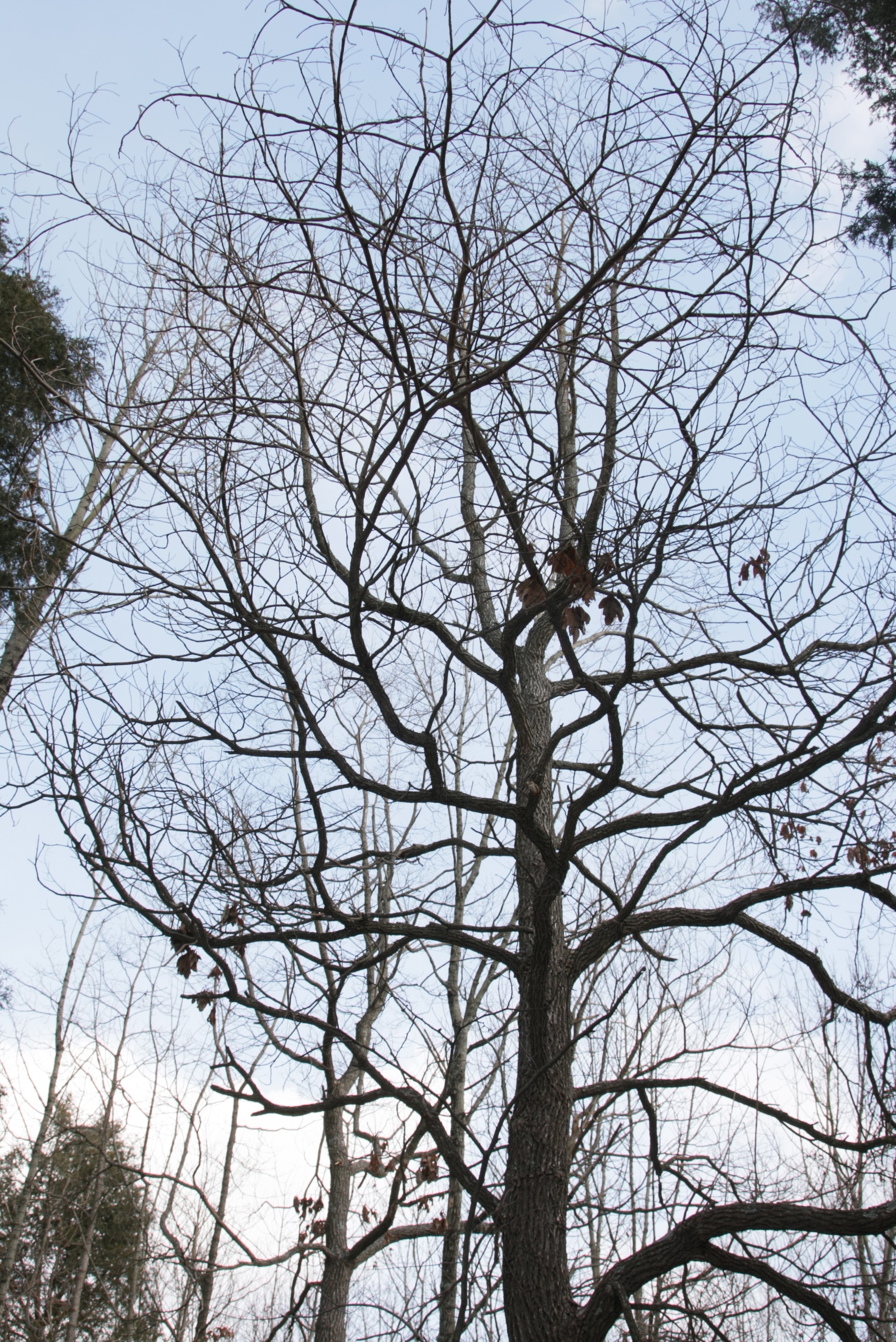 In the eastern woods, there are several very large Sassafras! How exciting is that? Fall colors can be spectacular. Bark is furrowed and ridged in mature trees. Bark has reddish interior. Leaves are polymorphic! One morp looks a little like a tulip poplar to me.